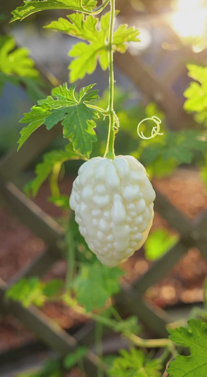 If you enjoy growing rare Asian vegetables or want something eye-catching in your garden, this White Apple Bitter Melon is a must-have addition.